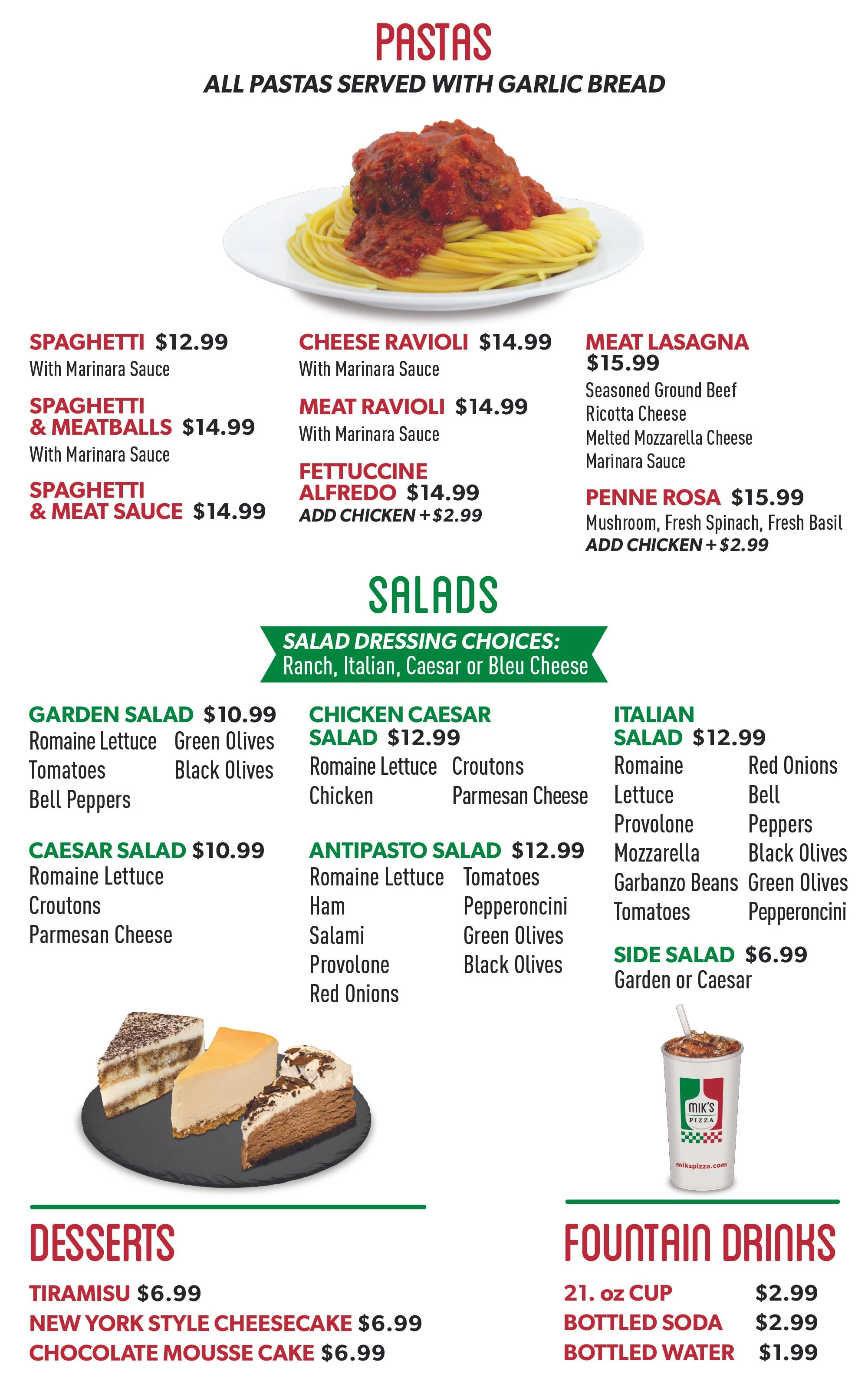 At Mik's Pizza, some of our favorites include the classic Meatball Sub, loaded with juicy meatballs, marinara sauce, and melted cheese on a fresh hoagie roll. Our Calzones are another must-try—stuffed with a blend of ricotta, mozzarella, and your choice of Italian meats or veggies, all folded into a golden, crispy crust. Of course, our pizza is the centerpiece, featuring perfectly baked dough topped with rich tomato sauce, a generous layer of cheese, and your choice of fresh toppings to satisfy every craving. Place your order today and taste the best Italian favorites in Oxnard!